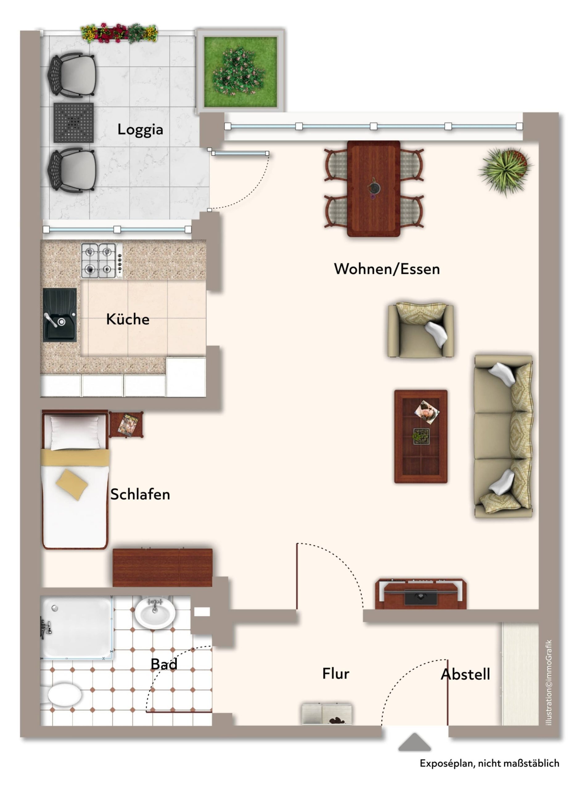Entdecken Sie diese gemütliche Wohnung im beliebten Stadtteil Gellershagen, die Ihnen ein ideales Zusammenspiel aus Wohnkomfort und praktischer Ausstattung bietet. Das im Jahr 1977 errichtete Mehrfamilienhaus auf einem Erbpachtgrundstück besticht durch seine solide Bauweise und ruhige Lage. Erbpacht mtl. 34,90 €, Restlaufzeit 46 Jahre. Die Wohnfläche von rund 47 m² ist clever aufgeteilt: Das helle, kombinierte Wohn- und Schlafzimmer bildet das Herzstück der Wohnung. Durch die großen Fenster und den direkten Zugang zur Loggia genießen Sie hier viel Tageslicht. Der neuwertige Vinylboden im Wohnbereich verleiht dem Raum nicht nur eine elegante Optik, sondern ist zudem pflegeleicht und strapazierfähig. Küche und Bad schließen sich an. Zusätzlich stehen Ihnen ein Tiefgaragenstellplatz sowie ein Kellerraum zur Verfügung – damit haben Sie stets einen sicheren Parkplatz und zusätzlichen Stauraum. Das Apartment ist sofort bezugsfrei. (Exposé 10726)