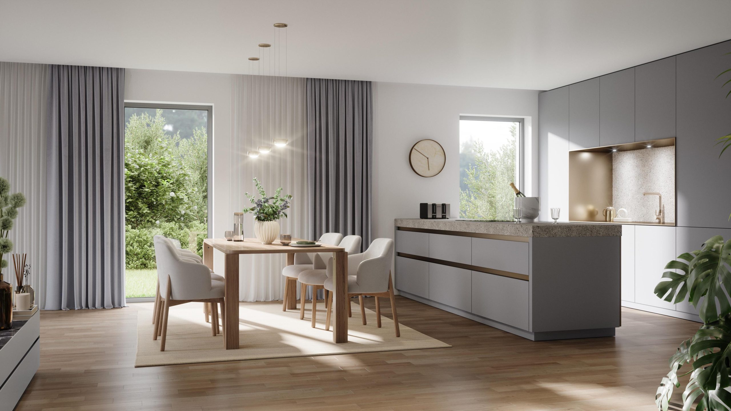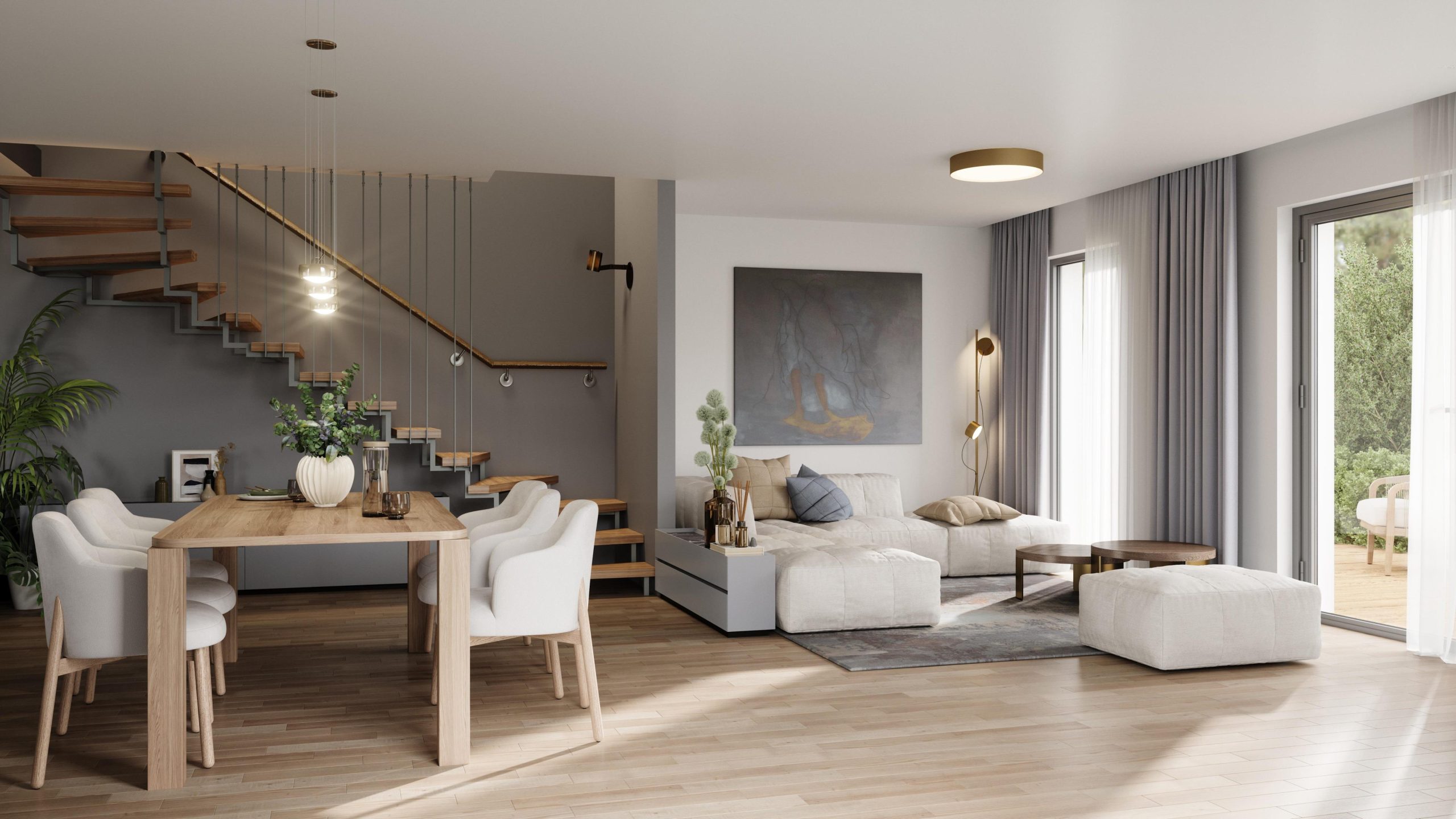 Nutzen Sie die aktuelle KfW 40 Förderung! Sonnige Stunden auf der Terrasse oder im Garten genießen, gesellige Abende im großzügigen Wohn-/Essbereich verbringen – all das und mehr bietet Ihnen dieses moderne Reihenhaus in familienfreundlicher Lage im neuen Wohnquartier in Heepen. Helle, offene Bereiche schaffen eine angenehme Wohnatmosphäre mit viel Bewegungsfreiheit. Im Erdgeschoss überzeugt der offene Wohn- und Essbereich mit angrenzender Küche und einem praktischen Hauswirtschaftsraum sowie einem Gäste-WC. Große Fensterflächen ermöglichen einen herrlichen Blick ins Grüne – eine hervorragende Gelegenheit für alle, die ihren Wohntraum in naturnaher Umgebung verwirklichen möchten. Im OG erwarten Sie drei weitere, gut geschnittene Zimmer – perfekt als Kinder-, Gäste- oder Arbeitszimmer. Ein zusätzliches Tageslichtbad im OG sorgt für maximalen Komfort im Alltag. Die Wohnfläche verteilt sich hier auf ca. 121 m². Die Fertigstellung ist für 2027 geplant. (Exposé 10433)
