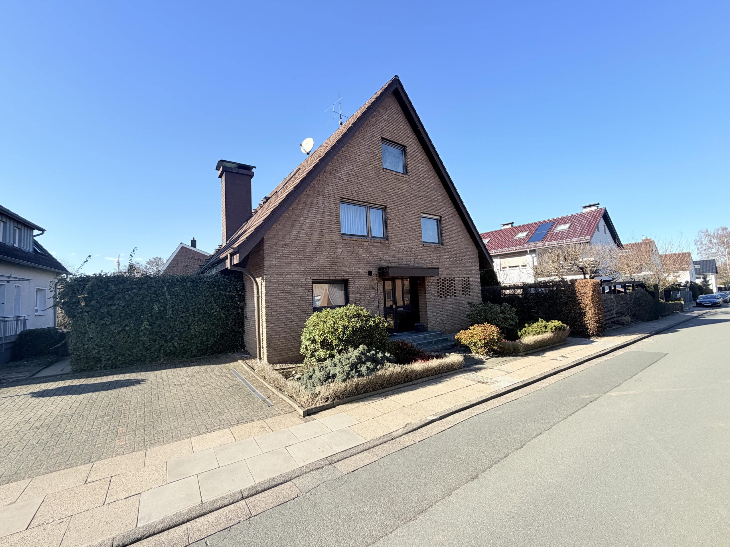 Dieses verklinkerte Einfamilienhaus aus dem Baujahr 1983 bietet ein großzügiges Platzangebot und vielseitige Nutzungsmöglichkeiten für unterschiedlichste Lebensmodelle. Mit einer Gesamtwohnfläche von ca. 187 m² eignet sich die Immobilie für Familien, Mehrgenerationenwohnen oder die Kombination aus Wohnen und Vermieten. Der Hauptwohnbereich bietet ausreichend Raum für Wohn-, Schlaf-, Arbeits-, oder Kinderzimmer. Die stimmige Aufteilung ermöglicht eine flexible Nutzung. Zusätzlich steht Ihnen eine separate Einliegerwohnung mit ca. 31 m² und einem Zimmer zur Verfügung. Diese Einheit eignet sich hervorragend als Gästebereich oder zur Erzielung zusätzlicher Mieteinnahmen. Die Immobilie ist komplett unterkellert und bietet damit umfangreiche Flächen für Hobbys, Abstellmöglichkeiten oder das sichere Unterbringen von Fahrrädern und weiterem Inventar. Wir freuen uns auf Ihre Anfrage! (Exposé 10661)